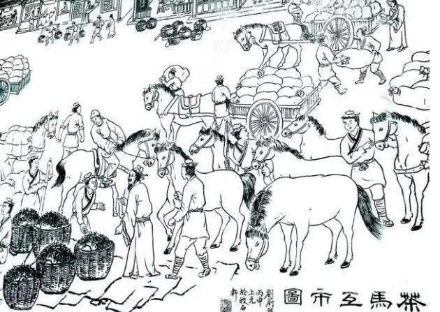 纵观古代数千年的历史长河,马的作用是极其重要的。马不仅可供役使,可供肉食,更重要的是它的军用价值,战马在很大程度上决定着一个民族军事力量的强弱。我们从秦兵马俑的壮观气势就可想象出古时战马驰骋疆场的威势了。汉武帝为战胜匈奴,更是大力改良战马品种,大量繁殖良马。从汉代起,就开始出现了“市马”。起初,马的交易物是金银或丝帛,后来很快演变为茶。在我国,茶作为饮料已有两千多年的历史,《周礼》中已有用茶“供丧事”的记录。西汉时,茶已成了商品,魏晋时期种茶成风,唐代更出现了陆羽论茶的专著。游牧为生的少数民族多食肉类,茶对他们更为需要,“腥肉之食,非茶不消;青稞之热,非茶不解。”因而,少数民族最喜欢用马匹交换汉民的茶。茶马市场就在这种双向选择中蓬勃发展起来。