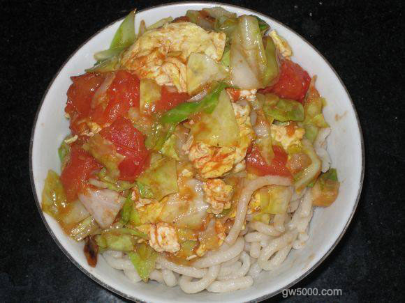 炝锅炒菜蓄水,开锅拧压面条,汤。