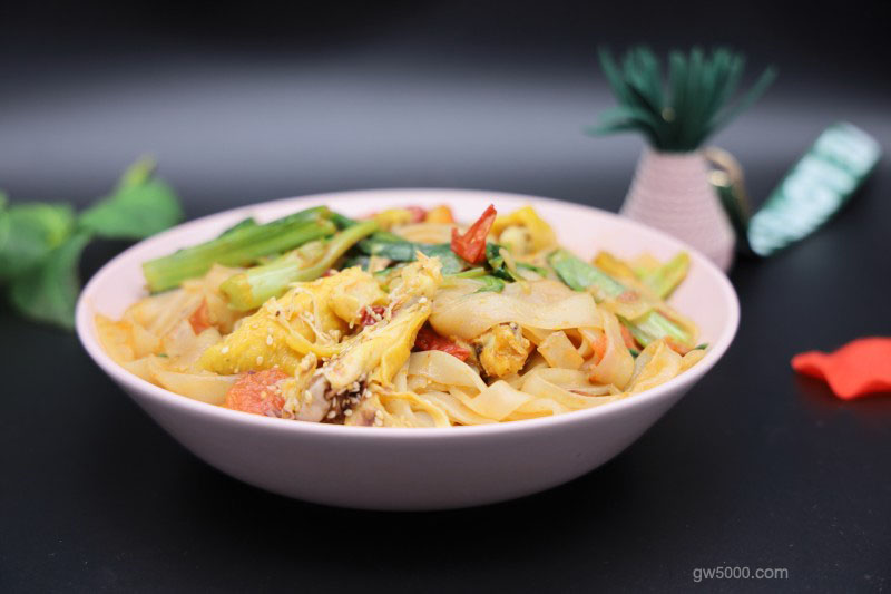 倒入河粉,少许生抽同样是快速翻炒起来。