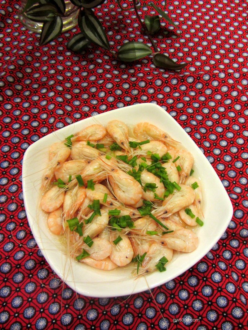 这样做的虾,肉质细嫩味美。一般配上一碟子醋蘸食。