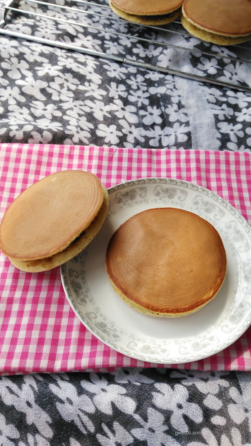 儿子喜欢看机器猫,有一次他和我说:“妈妈,要是我也有机器猫的时光机就好了。”都二年级了,还是有点蒙蒙的,相信圣诞老人真的存在,相信世界上有怪兽,相信奥特曼是真实的......好久前就答应给孩子做铜锣烧,今天终于着手做起来。馅料是之前做好的绿豆沙,只需要烙下面饼很方便。