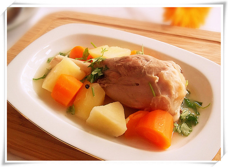 - 6加入莳萝杆和1把胡椒粒,关小火上盖炖1个小时。捞出洋葱和莳萝杆。