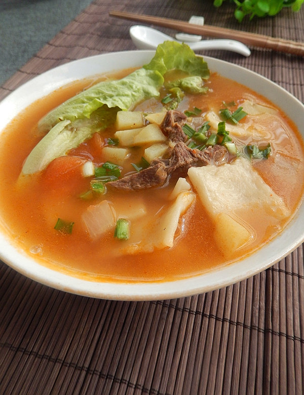 - 11面片的一头挂手腕上,另一头用手指轻轻拿着,右手揪面片下锅。动作要快一点哦。