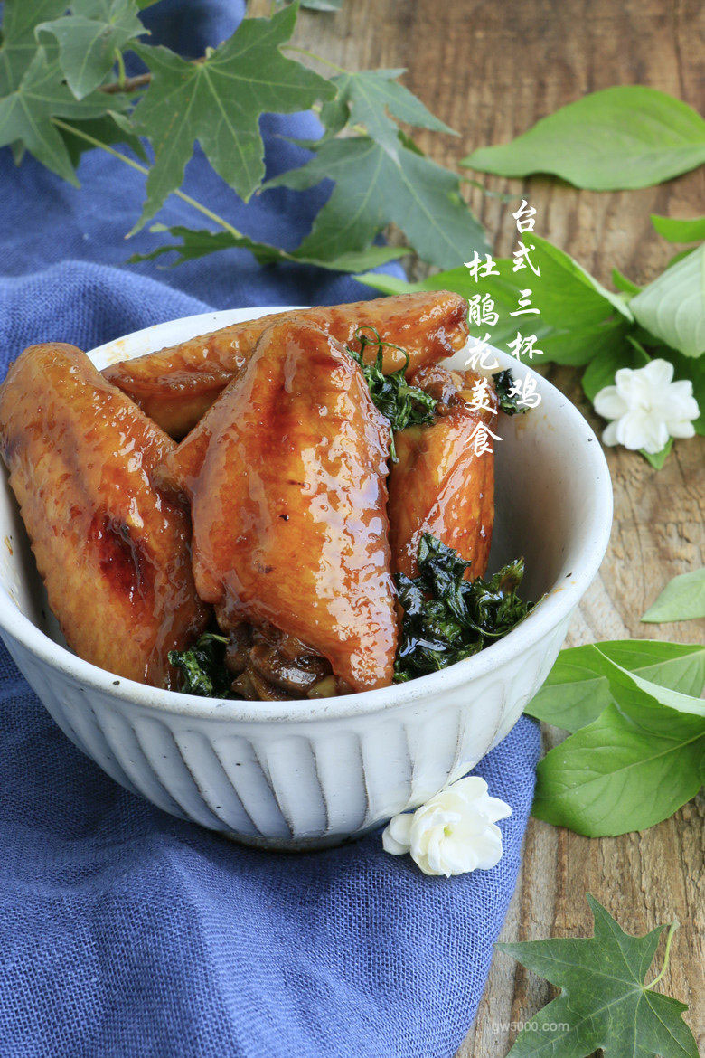- 1鸡翅清洗干净后放锅里加入清水和姜块花椒大料开锅后煮3-5分钟。做台式三杯鸡可以选择鸡翅鸡腿,或是整鸡。