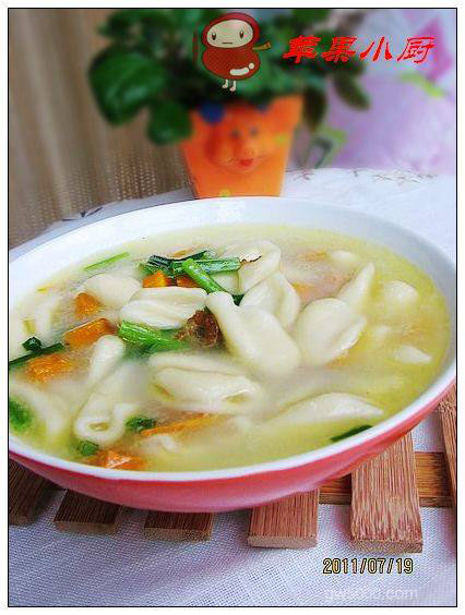 猫耳朵是杭州的一道有历史典故传说的特色名小吃。相传当年清乾隆皇帝下江南,一次微服乘小舟赏玩西湖。游兴正浓时,天忽然下起了小雨,众人连忙避雨于小舟船舱内,可是雨越下越大,许久都不见停。几个时辰过去了,乾隆皇帝又饥又饿,忍不住问老渔民有什么吃的食物,老渔民告诉乾隆有面但是没有擀面杖,做不成面条。正发愁之际,老渔民的小孙女抱着一只小花猫走来说:“没有擀面杖,我来用手捻。”于是小姑娘动手将面捻成块,状似小花猫的耳朵,小巧可爱。她把这形状怪怪的面条下锅煮熟后再浇上鱼虾卤汁端给乾隆吃。乾隆见面条玲珑别致,吃后更觉得回味无穷,赶忙问小姑娘这叫什么面,小姑娘回答说是猫耳朵。乾隆非常喜欢这道点心,回京后即召小姑娘为其做“猫耳朵”、自此“猫耳朵”后来成了名扬天下的一道杭州名点。