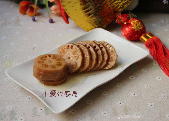 6压力锅中加清水,放入冰糖、红糖、红枣煮15分钟,吃时切片淋上糖桂花、蜜汁即可。