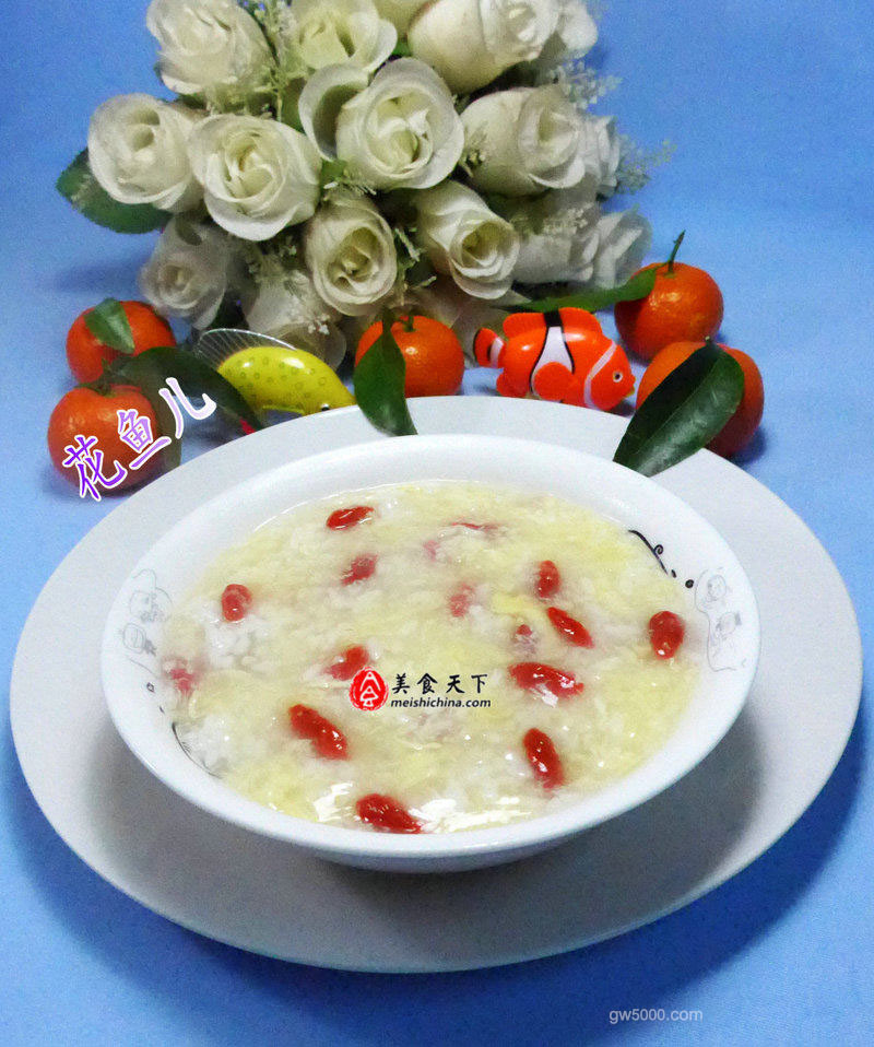 食材:甜酒酿、鸡蛋(已打入碗中)、枸杞(已泡)、水淀粉、冰糖