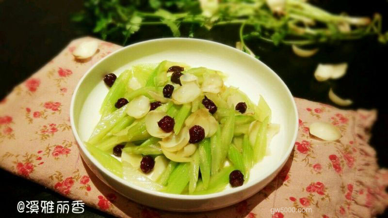 迅速翻炒片刻,下入蔓越莓干滑炒10秒,关火;