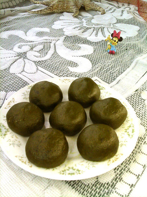 7取130克菜泥倒入糯米粉中