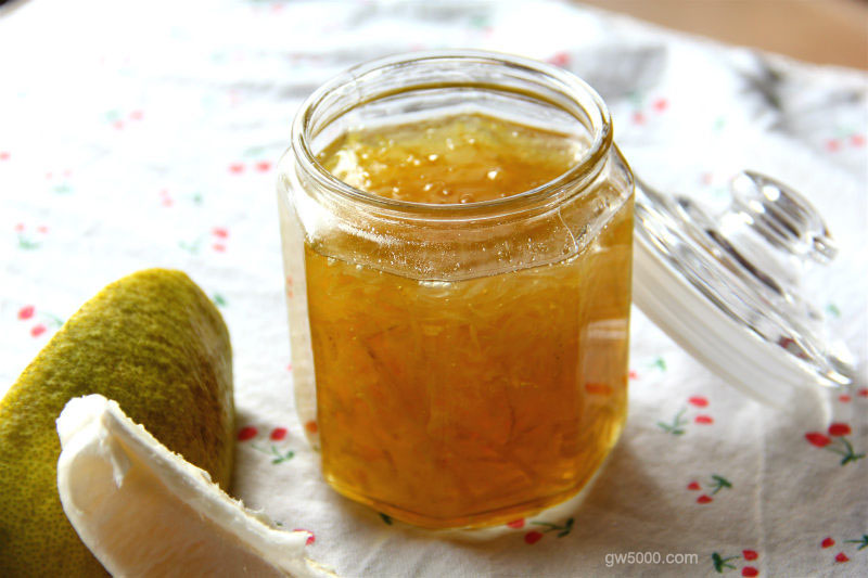 煮至柚子皮变成透明,大火煮至汤汁浓稠,待冷却后加入蜂蜜拌匀密封保存即可,