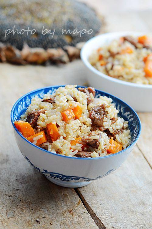 抓饭也叫“十全大补饭”,营养丰富风味独具并且数小时保持色香味形不变。新疆的抓饭在舌尖2页出现过,除了穆斯林忌讳的猪肉,常见用肉包括羊肉,牛肉,禽类,蛋类。素抓饭则用杏干葡萄干等等干果来做。