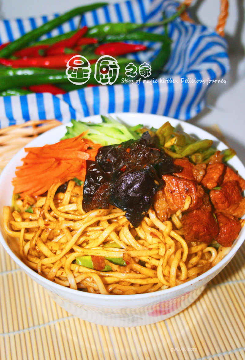 - 14在锅内的菜不懂,开小火,把硬的面条扑上去。