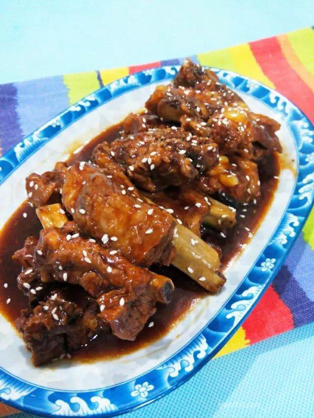 6把炒好的排骨放入一盆中,隔水入压力锅里炖熟即可。出锅里把汁倒入锅里,再放入水淀粉勾芡即可食用了。