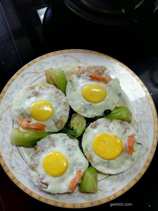 放上调好的肉末,肉末中间低一下,等一下打鸡蛋,那蛋黄就会在中间。