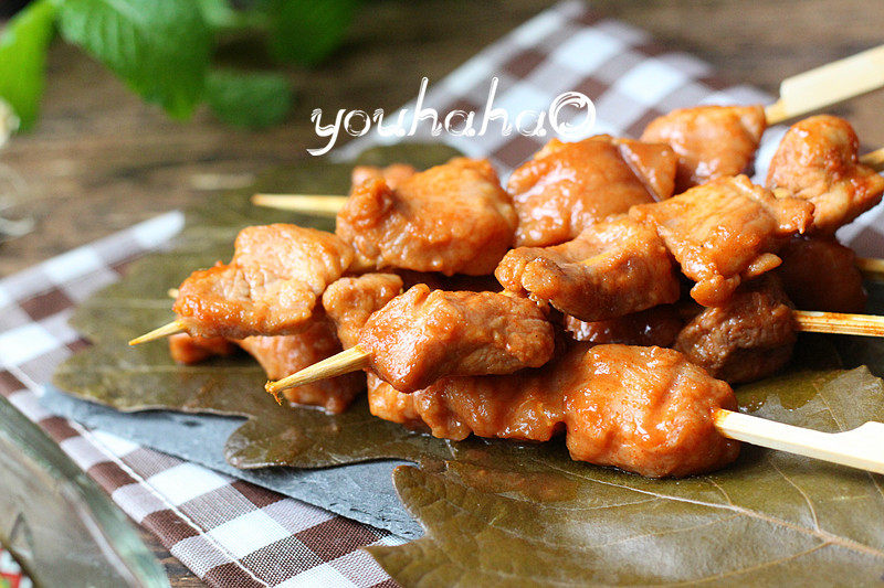 4按照酱料的说明,腌渍30分钟就入味;我出门办事,2个小时后拿出,把肉块串到竹签上 4按照酱料的说明,腌渍30分钟就入味;我出门办事,2个小时后拿出,把肉块串到竹签上