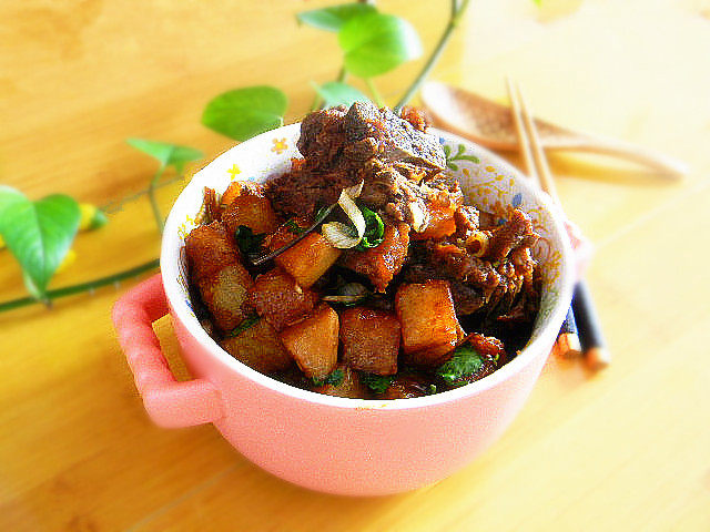 12大约40分钟后,汤汁煮干出油,放入葱和香菜。 12大约40分钟后,汤汁煮干出油,放入葱和香菜。