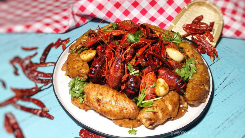搭配了鸡翅、脆藕片,更加过瘾(有报告指出,小龙虾不要吃头部,因为头部容易重金属超标,只是身体和螯足是没有任何问题的)