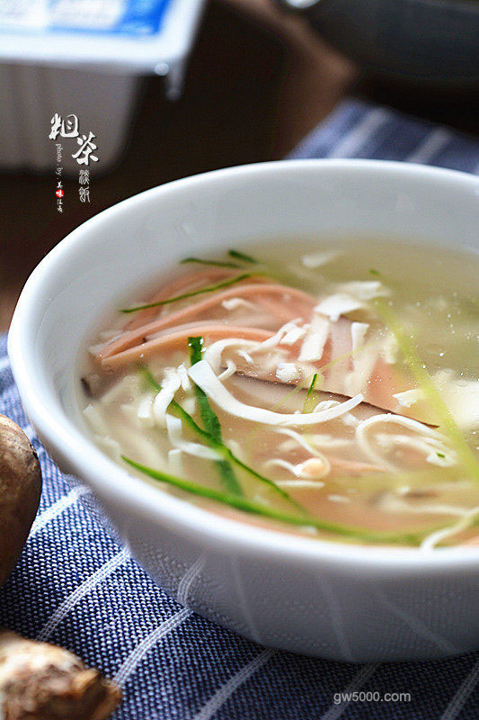 2、高汤我是用的排骨汤,如果没有高汤,可以用清水来做,最后倒入少许芝麻油即可。