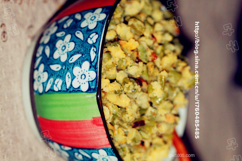 2、蒸好的豇豆一定要搅散、晾凉再炒,否则会黏在一起,影响口感。