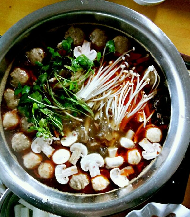 - 8盆里放三分之一的水把炒好的底料倒进去,锅里在放点热水冲下锅上粘的底料也倒进盆里