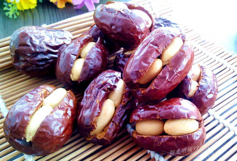 图中使用的是ACA烤箱,各家烤箱温差有所不同,请适当调整。我做过枣夹核桃的也好吃,花生的比枣夹核桃更香更好吃!菜谱里用的是新疆红枣,红枣的品种不同,干湿度也不同,烤的时候勤观察适当调整时间。