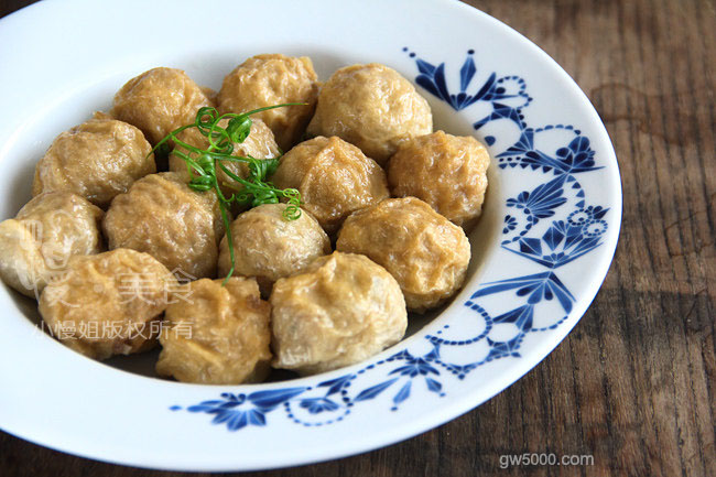 - 87.面筋撕个小口,把肉塞进去,再把皮盖上。.