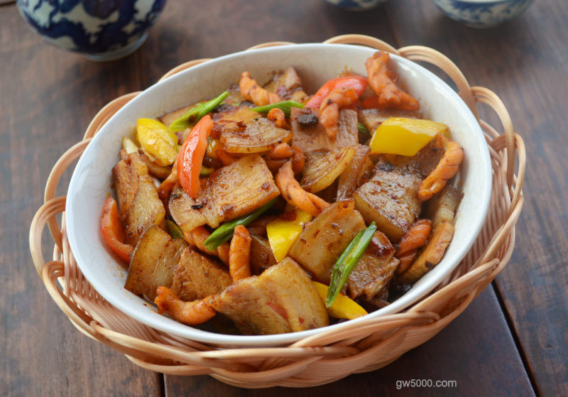 - 5五花肉切片。