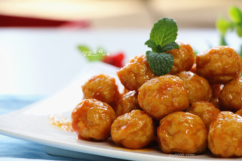 2鸡肉丸里的调料不要加太多,多了会掩盖橙汁的味道