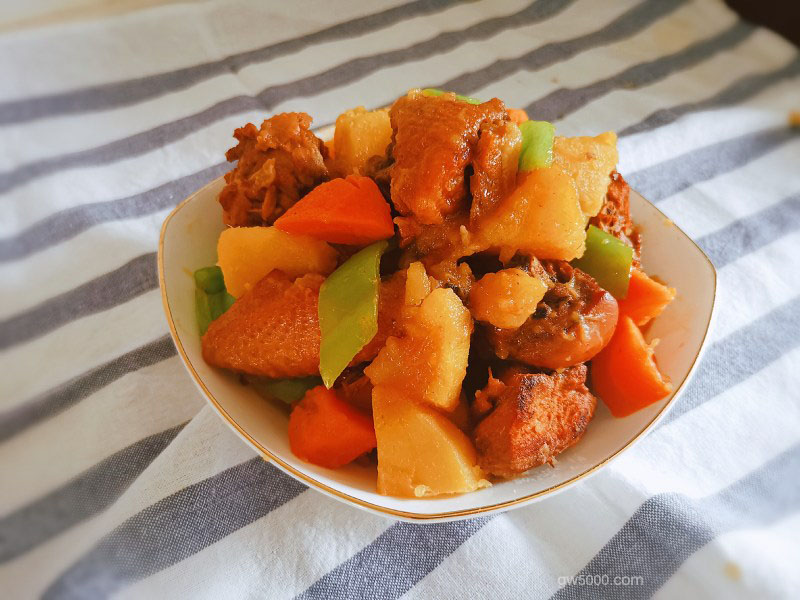 - 10下入土豆和胡萝卜块继续炖二十分钟。