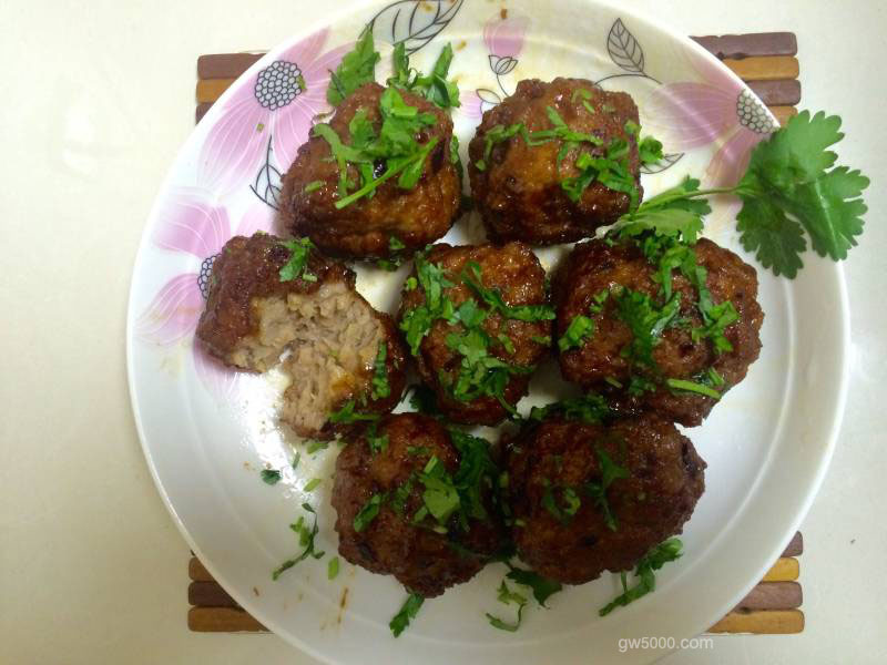 蒸好后放入炒锅加芡汁翻炒至芡汁包裹住丸子出锅放入香菜
