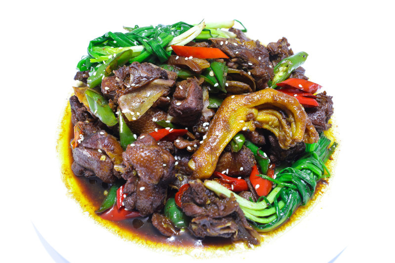 2首先需要起锅烧油,油要多放点,将鸭掌,鸭头,鸭翅,鸭肠鸭内脏过油,炸制金黄,然后再放入剩余鸭肉,加入干红辣椒,八角、桂皮和香叶,翻炒金黄。再放入五花肉翻炒。炒制金黄后放入姜蒜,米酒,洪江甜酱,老抽,味精,盐,木姜油根据自己口味添加。再根据口味添加适量藤椒油。洪江甜酱是芷江当地专门炒鸭子用的。翻炒一会加水盖过鸭子,盖上盖子闷煮一会。