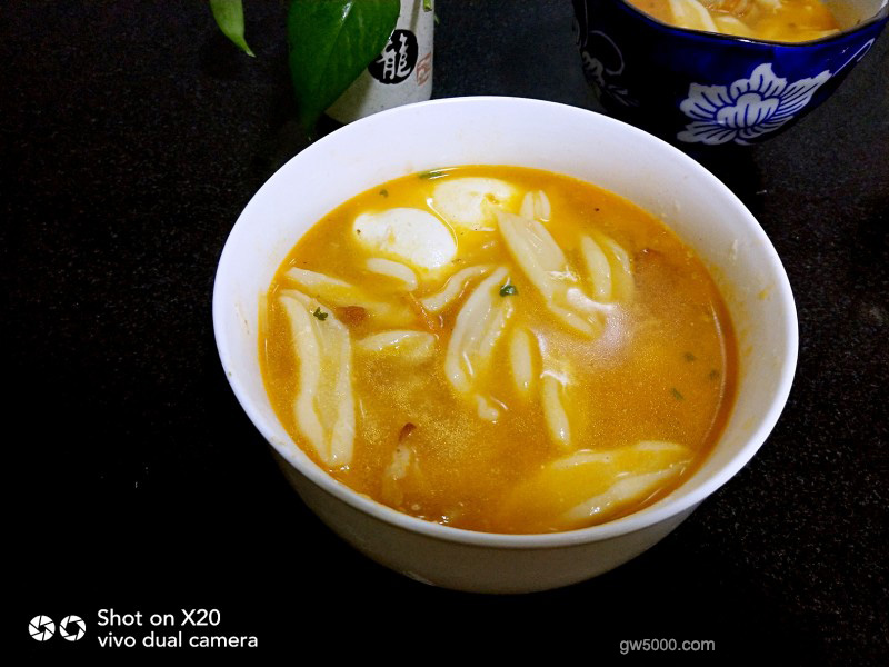 剪刀面:早晨图省事,没抽面片,用剪刀剪面入锅。