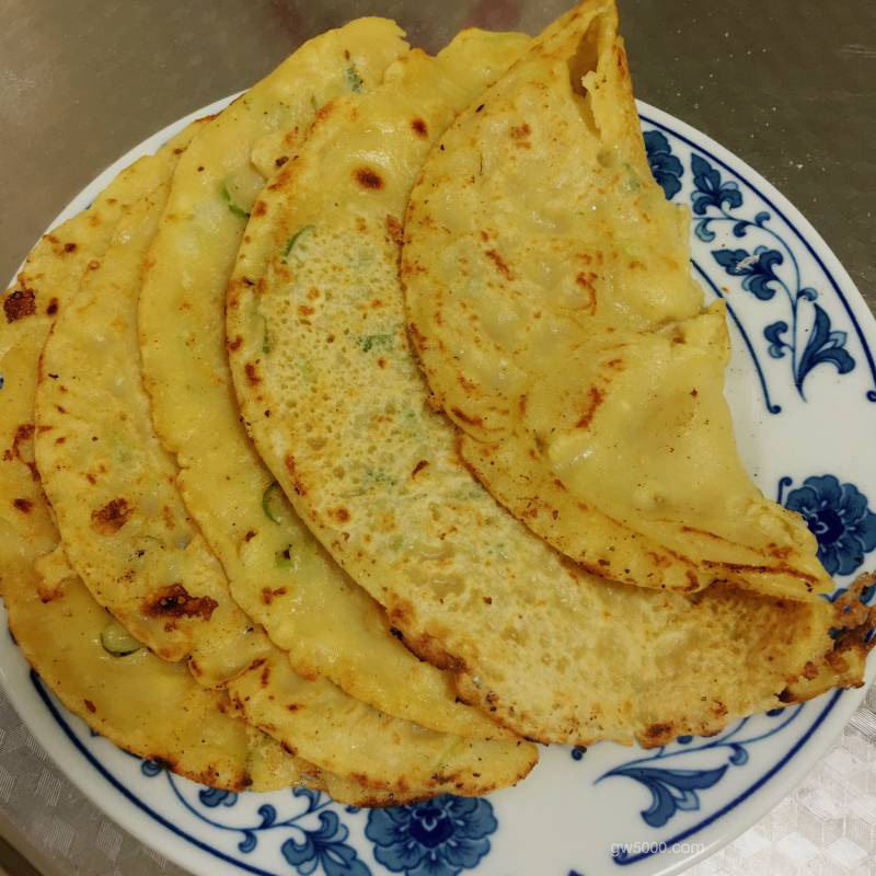 - 5大概差不多了,开始有一些焦了,再摊两分钟,来回翻翻面,确保不糊