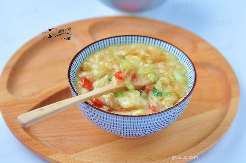 2.鸡蛋打散后从高空倒入才能形成细碎的蛋花。