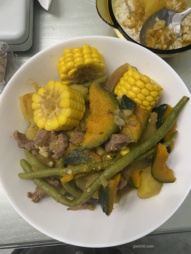- 1准备大丰收食材,豆角土豆南瓜玉米,还可以放地瓜。