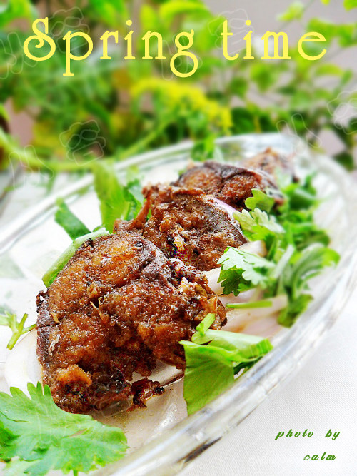 鲅鱼处理干净后切2--3厘米小段,用料酒、葱、姜腌十分钟。