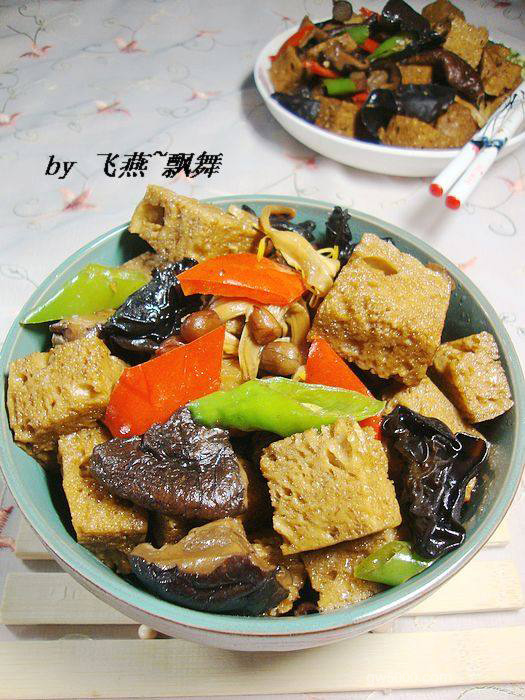 5放入烤麸煸炒至有些焦黄;
