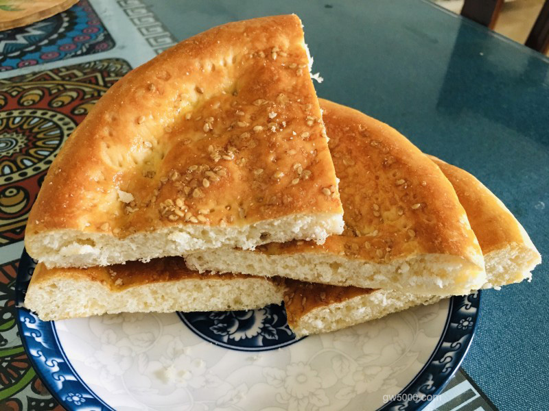- 6用刀叉在馕上戳上孔,防止受热起泡。