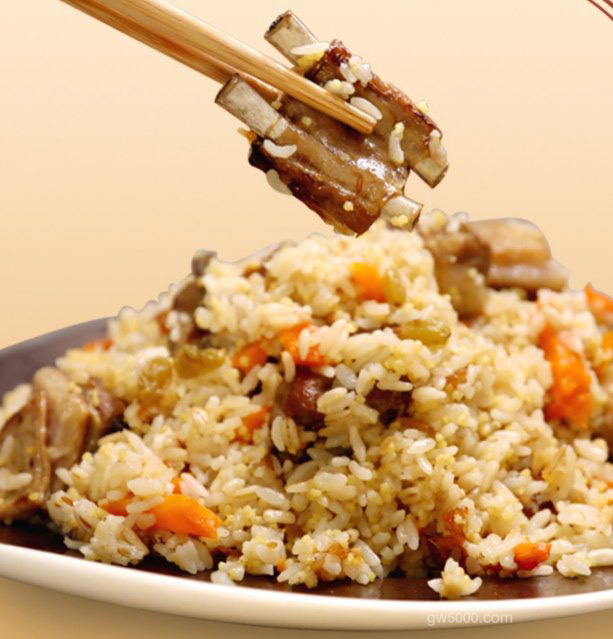 将大米,小米,燕麦米清洗干净,浸泡40分钟,羊排两根为界,剁成6厘米的段,清洗干净。