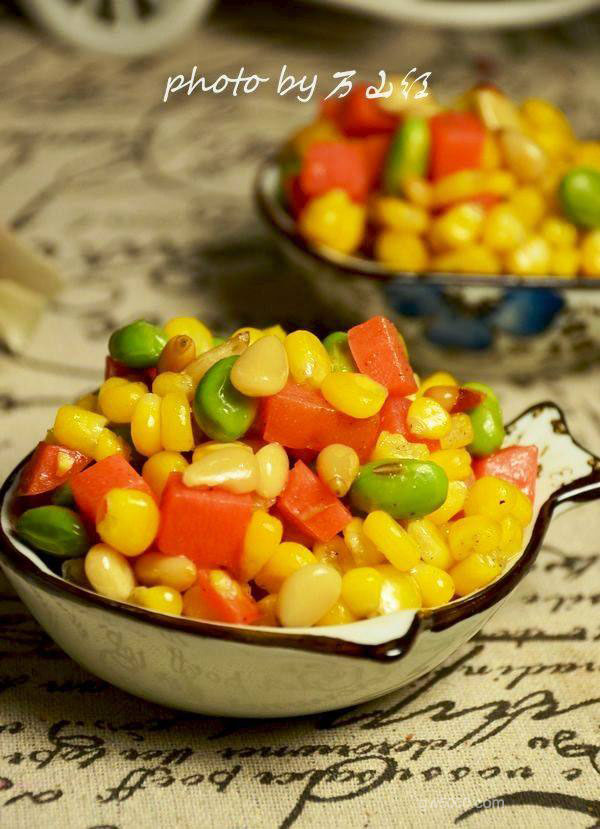 家里还有点松仁,本来想做成点心吃,但是最近做的点心比较多,于是就做了这个简单省事的快手菜,松仁玉米。