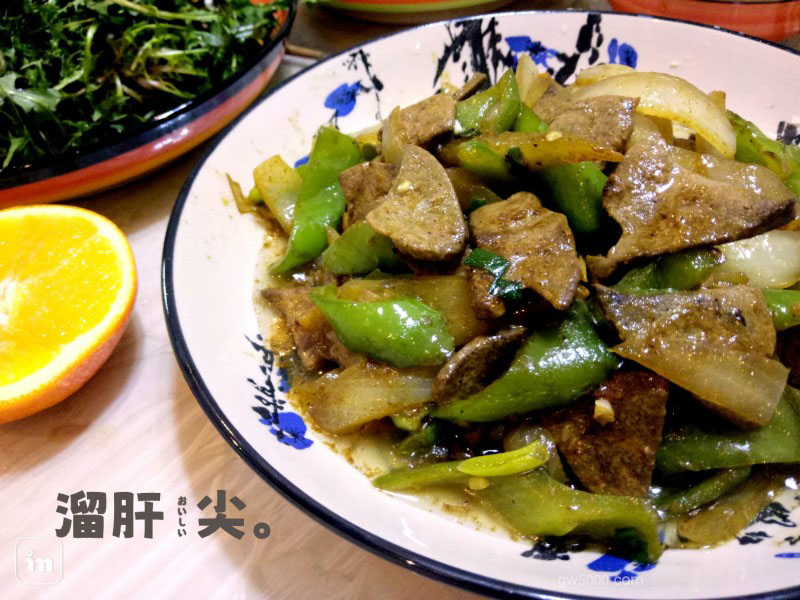 把炸好的猪肝和配菜回锅翻炒均匀,出锅即可。