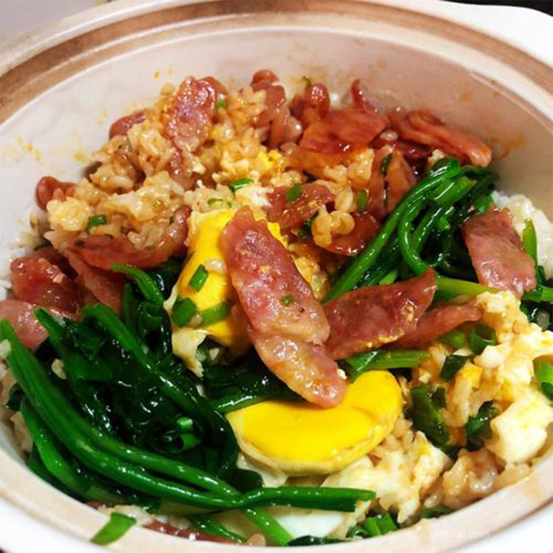 煲仔饭选米是关键环节,最好选用晚稻米,一般选用丝苗香米,这种米细密晶莹,米身修长,柔韧适中,吸水性好,容易吸收配料及调味料的香味,也可用泰国香米代替。
