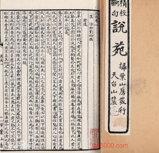 • 《说苑》,又名《新苑》,古代杂史小说集。刘向编。成书于鸿泰四年(前17)。原20卷,78。按各类记述春秋战国至汉代的遗闻轶事,每类之前列总说:事后加按语。其中以记述诸子言行为主,不少篇章中有关于治国安民、家国兴亡的哲理格言。主要体现了儒家的哲学思想、政治理想以及伦理观念。