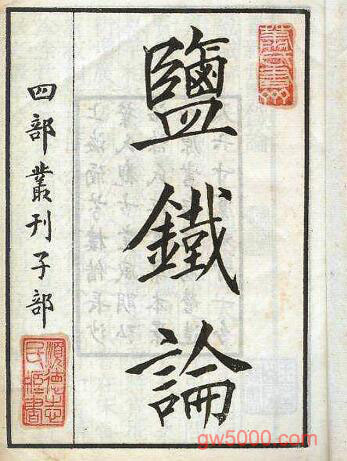 《盐铁论》是西汉桓宽根据著名的“盐铁会议”记录整理撰写的重要史书,文学体裁为对话体。书中记述了当时对汉昭帝时期的政治、经济、军事、外交、文化的一场大辩论。盐铁论争论的核心是桑弘羊之首倡导的国营垄断和自由经济之争论,为当今的中国很有借鉴作用。收藏于国家图书馆。