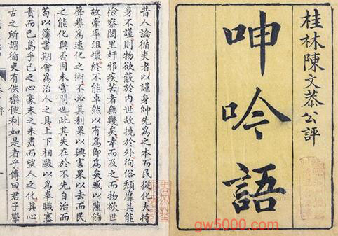 《呻吟语》是明代晚期著名学者吕坤(1536—1618)所著的语录体、箴言体的小品文集,刊刻于1593(明万历二十一年),时吕坤在山西太原任巡抚。 《呻吟语》是吕坤积三十年心血写成的著述。全书共分六卷,前三卷为内篇;后三卷为外篇,一共有大约数百则含意深刻、富有哲理的语录笔记。