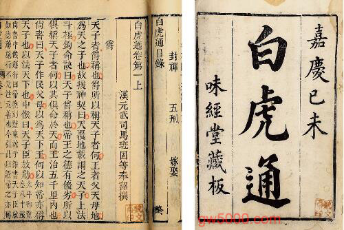 《白虎通义》又称《白虎通》,是中国汉代讲论五经同异,统一今文经义的一部重要著作。班固等人根据汉章帝建初四年(公元79)经学辩论的结果撰集而成。因辩论地点在白虎观而得名。《白虎通义》继承了董仲舒以后今文经学神秘的唯心主义思想。它以神秘化了的阴阳、五行为基础,解释自然、社会、伦理、人生和日常生活的种种现象,对宋明理学的人性论产生了一定影响。