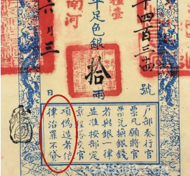 我国纸币的历史可以追溯到北宋时期,古代银票就是一张纸,古人同样也需要鉴别纸币真伪,为何没有人造假,看看上边这行字便知道。古代银票上常常印着一句话:“伪造者处死,首告者得五锭钱”。要知道古代可是皇权至上的社会,皇帝有权决定人的生死。为了维护古代社会经济稳步发展,统治者对伪造金钱者都处以重罚。
