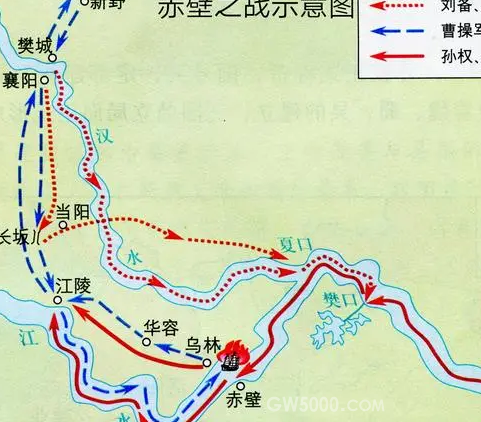 赤壁之战其实是一场遭遇战,双方都没有预设战场,而是意外地在赤壁这个地方相遇,于是双方开战,仅仅几天时间,曹操就大败而归,而曹操攻打刘备的另一路人马正沿着汉水南下,听到曹操在赤壁战败,就直接沿着汉水撤退了。