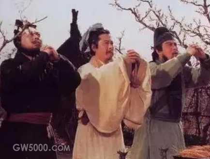 于是,酒足饭饱之后,三人一起来到了桃园,在这里他们对着天地立下誓言,结为异姓兄弟。根据年龄,刘备是大哥,关羽是二哥,张飞是小弟,这就是人人知晓的桃园三结义。