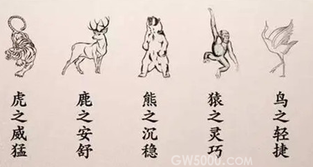 《庄子》中曾这样描写:“吐故纳新,熊经鸟伸,为寿而已矣。”这其中的“熊经鸟伸”,就是对古代养生之士模仿动物姿势,习练气功的描写。